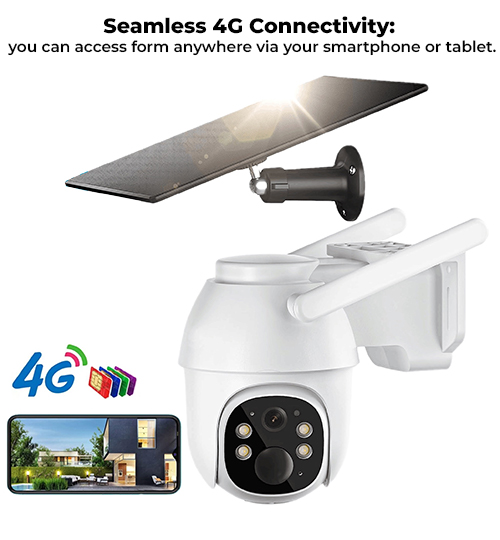 Seamless 4G Connectivity: Thanks to its built-in 4G capabilities, you can easily access live footage from anywhere right on your smartphone or tablet.