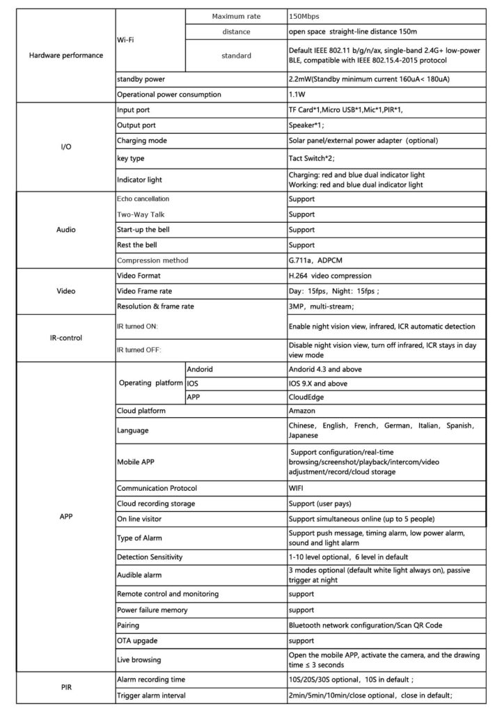 Long standby time: With low power-consumed technology and large battery capacity, the camera can stay up to 120 days without charging.