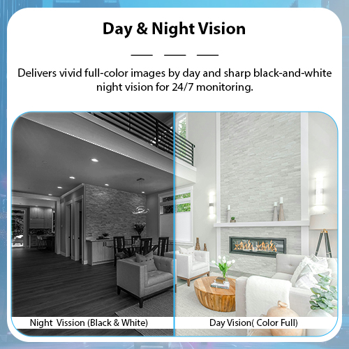 Day & Night Vision: Delivers vivid full-color images by day and sharp black-and-white night vision for 24/7 monitoring.