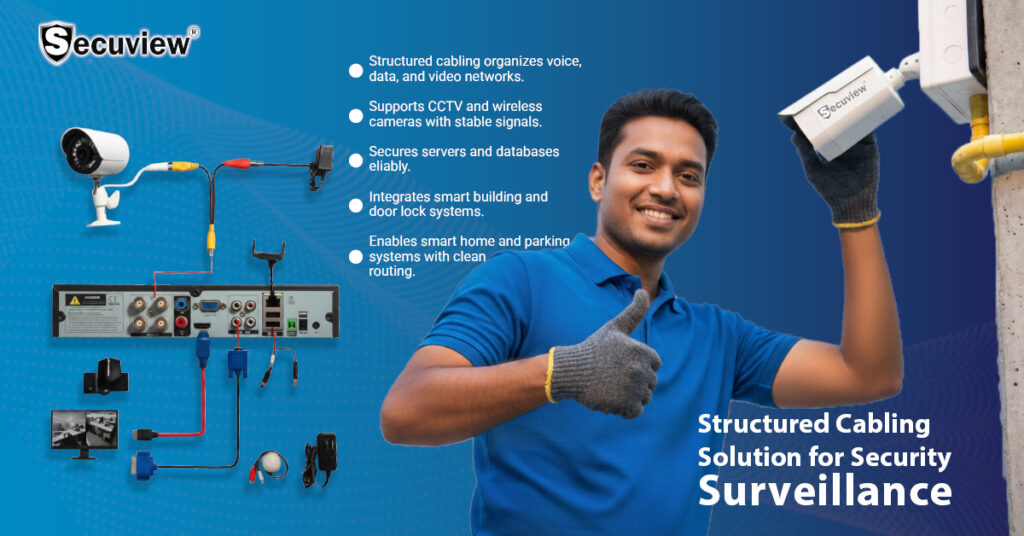 Structured cabling improves network performance. Signal interference is reduced. CCTV camera feeds remain stable.